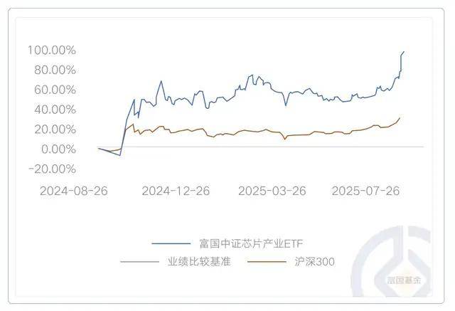 注:富国中证芯片产业ETF成立于2021/08/19,业绩比较基准为中证芯片产业指数收益率。近3个完整年度(2022-2024)的基金份额净值增长率(及同期业绩比较基准收益率)为-36.72%(-37.41%),-1.95%(-2.18%),26.16%(26.38%),数据来自基金定期报告,截至2024/12/31。期间基金经理变动情况:张圣贤(2021/08/19至今)。基金收益率不代表投资者实际收益率,基金份额净值仅为每份额基金产品的净资产。基金历史业绩不构成对未来业绩的保证。