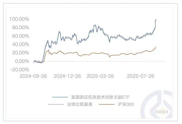 注:富国国证信息技术创新主题ETF成立于2023/09/14,业绩比较基准为国证信息技术创新主题指数收益率。近1个完整年度(2024)的基金份额净值增长率(及同期业绩比较基准收益率)为25.72%(26%),数据来自基金定期报告,截至2024/12/31。期间基金经理变动情况:曹璐迪(2023/09/14至今)。基金收益率不代表投资者实际收益率,基金份额净值仅为每份额基金产品的净资产。基金历史业绩不构成对未来业绩的保证。